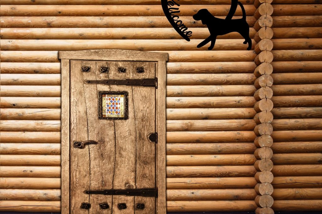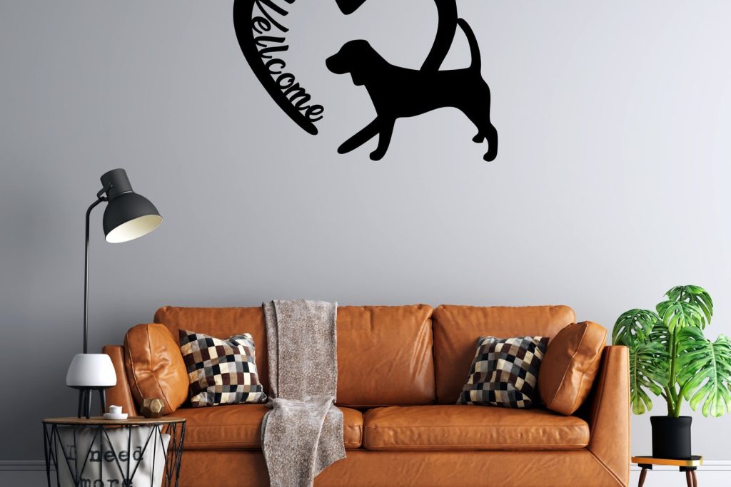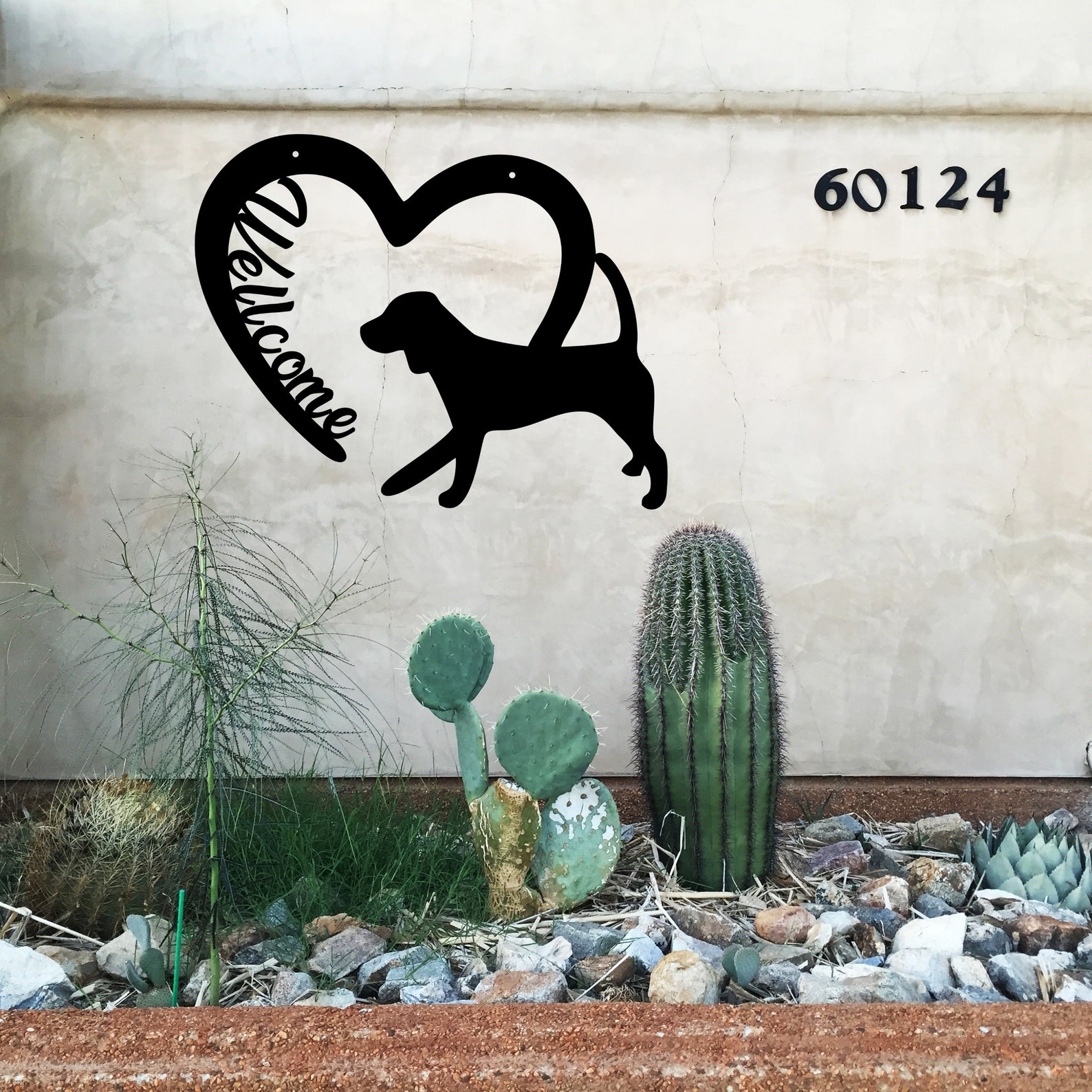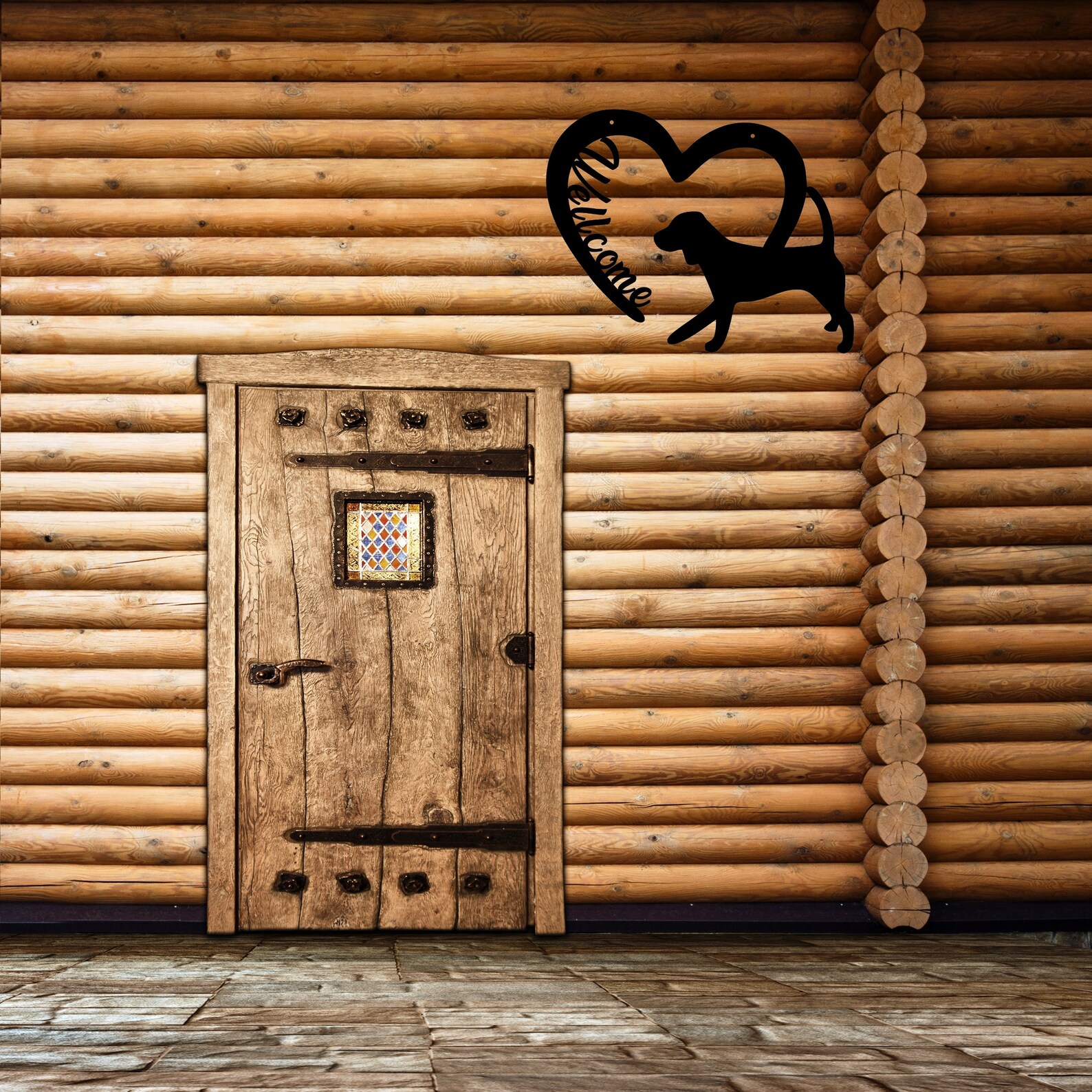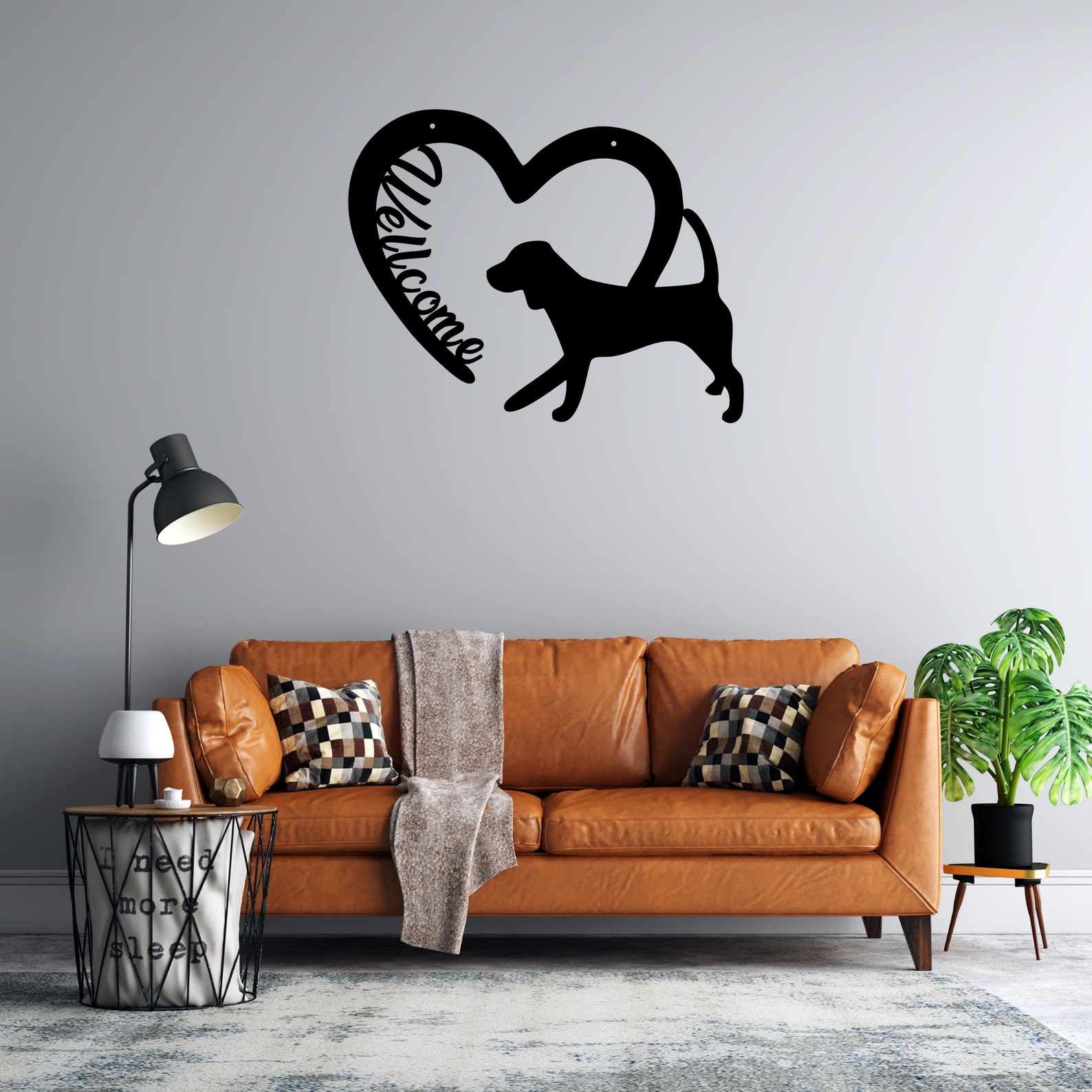 Welcome Dog Sign – Metal Heart Silhouette Decor