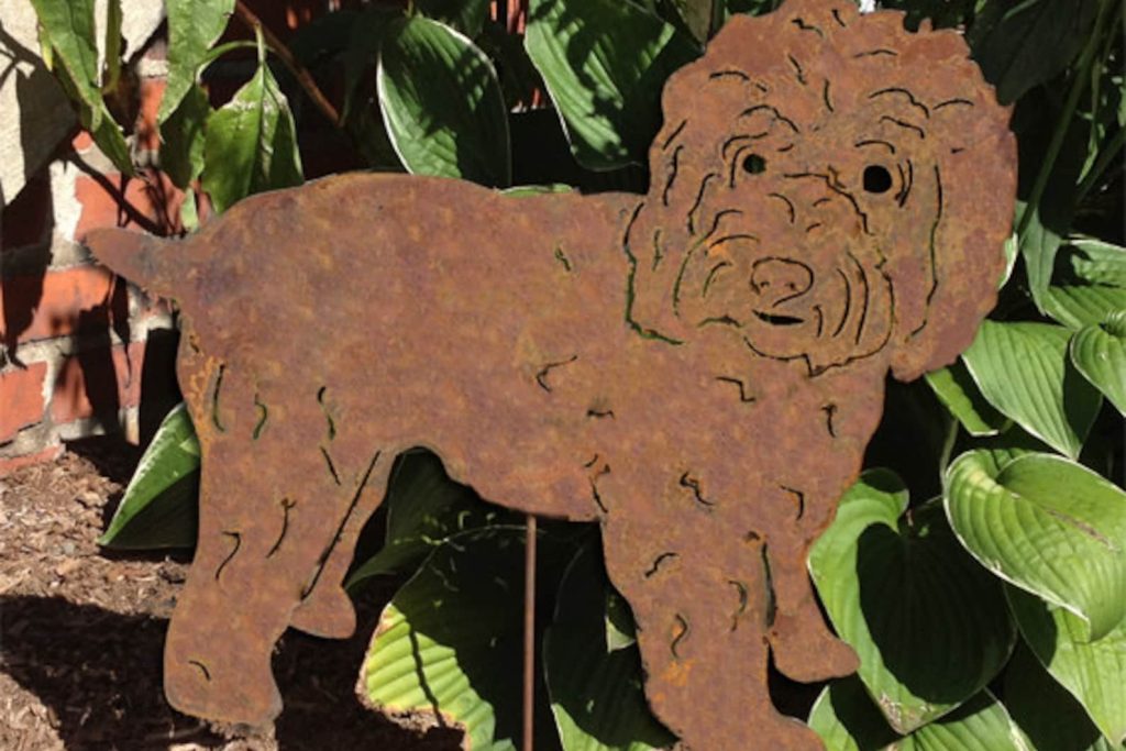 This handcrafted rustic metal Wheaten Terrier Garden Stake or Wall Hanging will become a decorative favorite. A charming way to add some fun to your home, garden and lawn decor.
