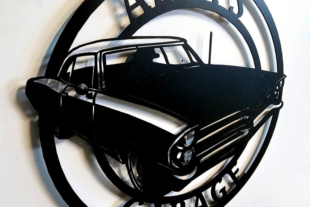After purchase your order goes through our cutting process where it is designed, programmed, then precisely cut by our top of the line Craftsens fiber lasers. Me then make sure the metal is properly cleaned & cut before going to the next step. Now that the sign has been cut, cleaned it can now go through our powder coating system where your sign is hung and ran though our automated powder line so your sign comes out looking perfect.