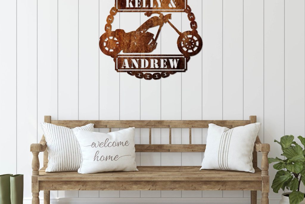 Sweet Ride9;s laser-cut metal Chopper Personalized Garage Sign is the perfect addition to your man cave or garage