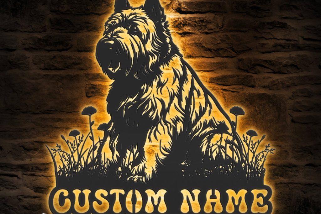 Be the first to review “Custom Bouvier LED Metal Art – Dog Name Sign”