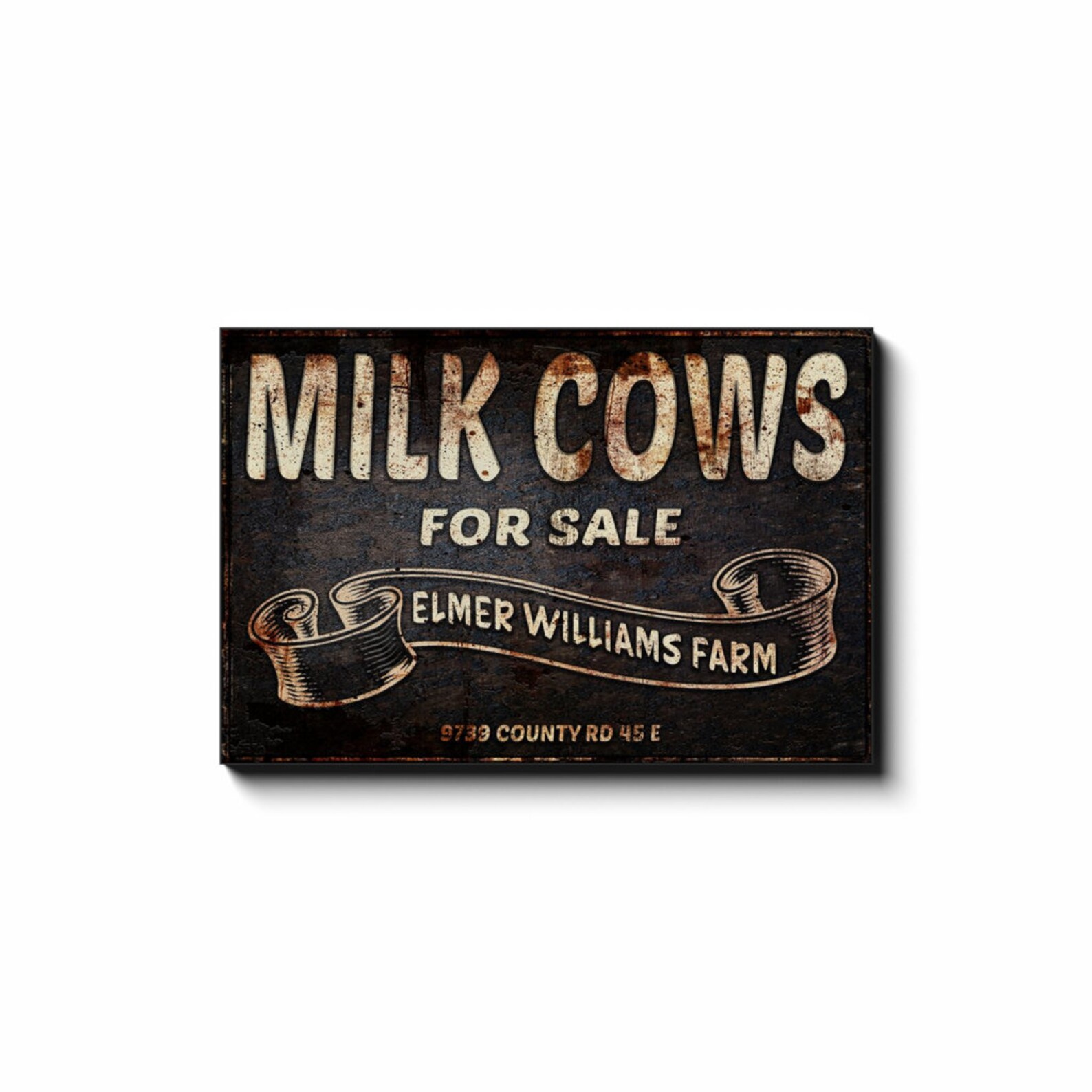 Cows For Sale Sign is uniquely designed to look like an old vintage metal sign, rusty and weathered with age, but it9;s canvas! Personalize it and make it your own. This lightweight canvas art arrives ready to hang and enjoy. Your family and guests will LOVE it, and it makes a wonderful, thoughtful gift!