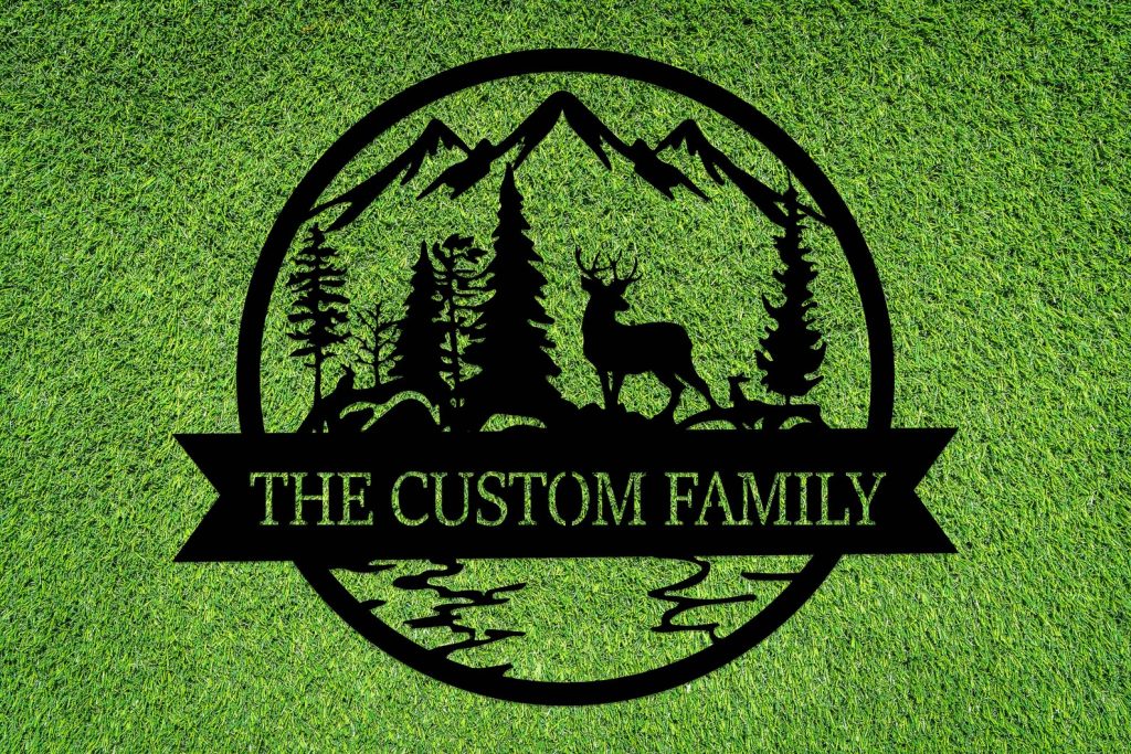 Custom Deer Cabin Metal Sign – Personalized Mountain Decor