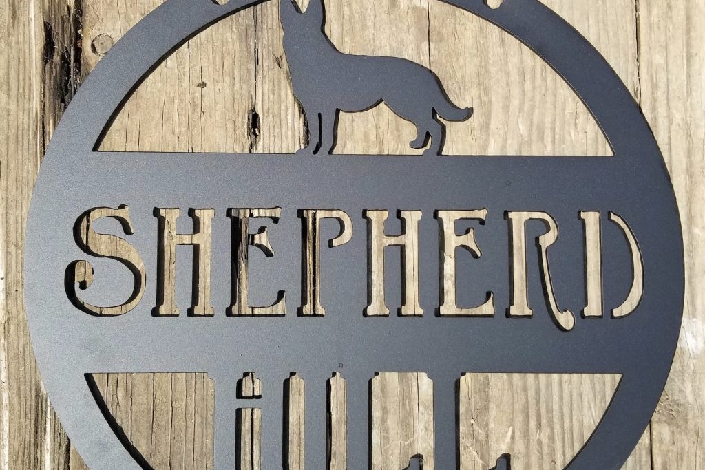 This hanging dog sign is a great gift for the dog lover in your life. Customize this metal sign with a dog breed and add a family name or the name of a property to make this a unique piece for someone whose dog is a member of the family.