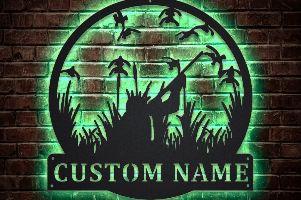 Be the first to review “Duck Hunter With Dog Sign – LED Lights, Custom”