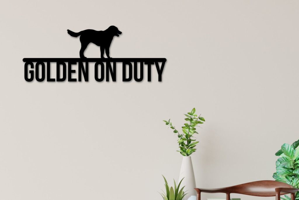 Be the first to review “Golden Retriever on Duty Sign: Metal Dog Art”