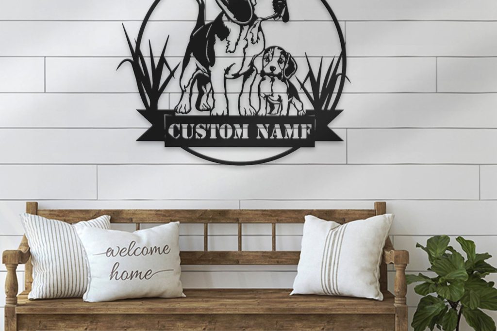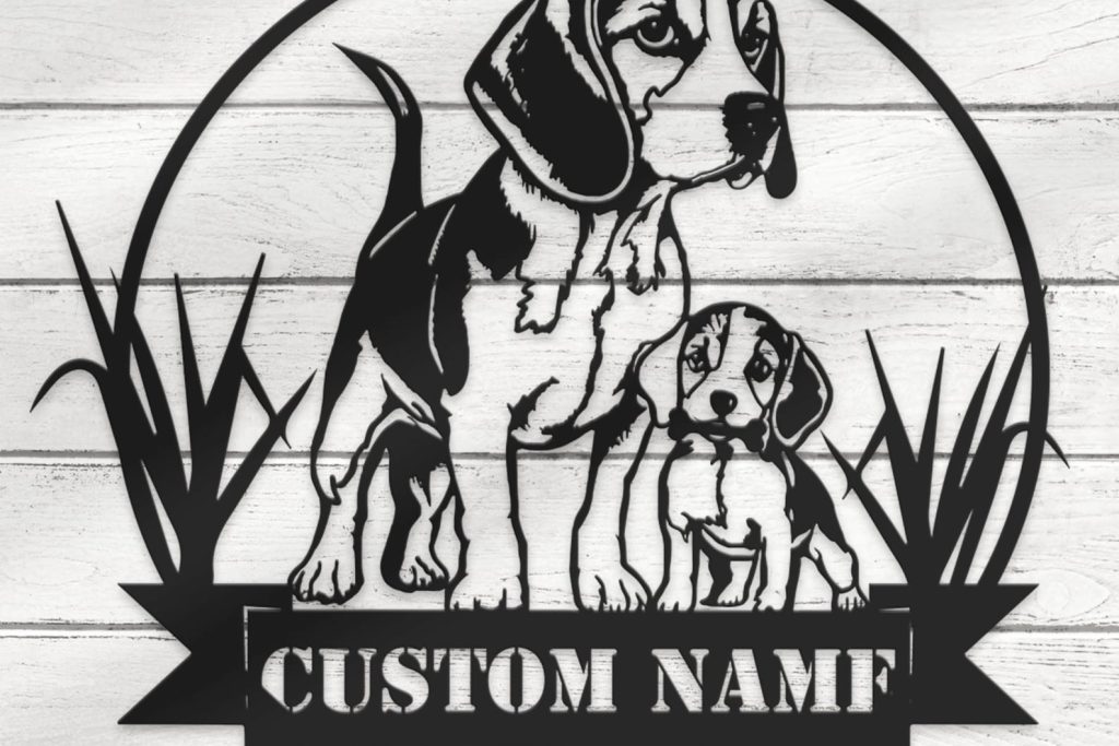 Mom & Child Beagle LED Metal Wall Art – Nursery Decor