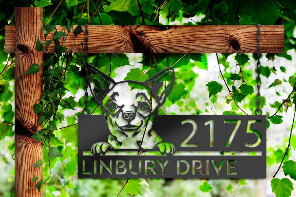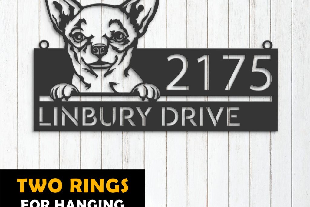 Personalized Chihuahua Metal Address Sign – Custom House Number