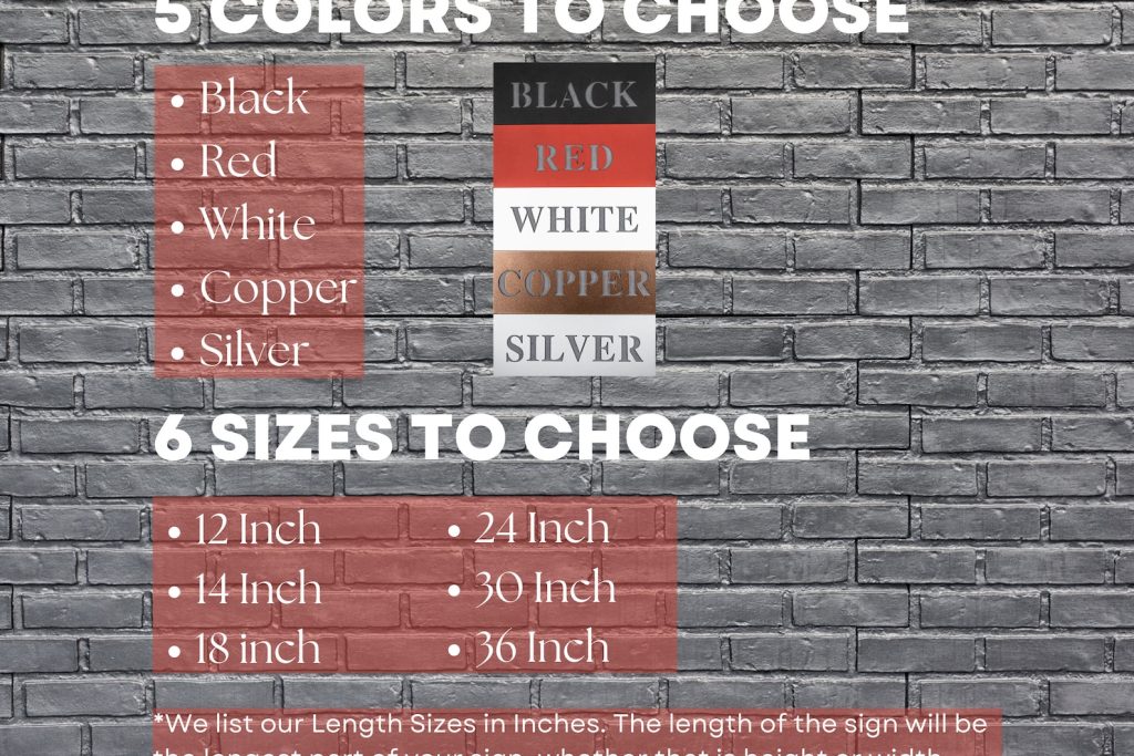 We offer a choice of 5 colors and six different sizes! This metal sign is built to withstand the elements for years.