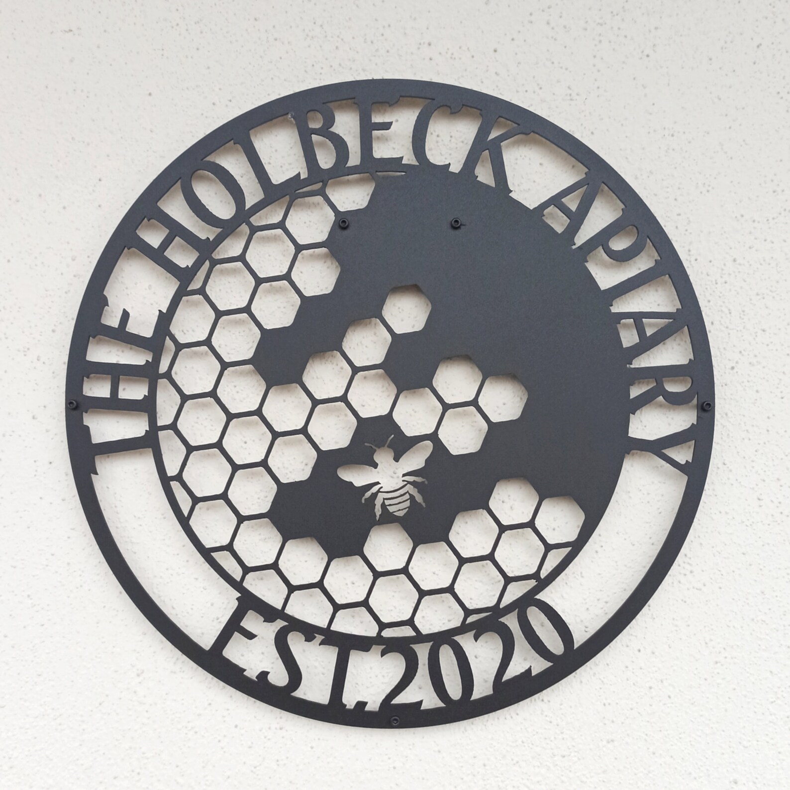 All of our signs are designed uniquely to your personalization, laser cut from premium 18 gage steel, and then powder coated for long lasting protection.