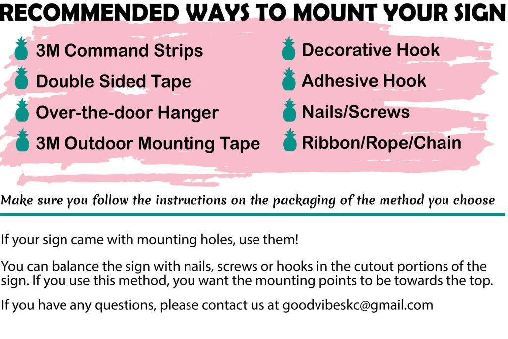 This listing comes with 2 mounting holes towards the top. Send us a message if you9;d like the holes in a different location or don9;t want any holes at all.