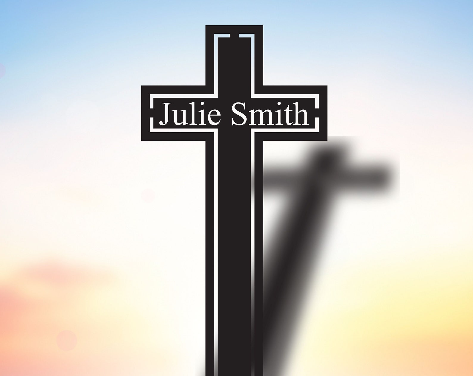 This one of a metal memorial cross customizable to the name of your choice. All signs are powdercoated black unless otherwise specified.