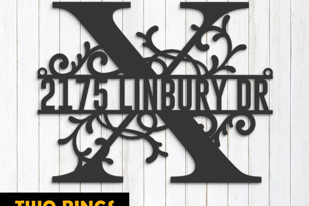 Be the first to review “Personalized Split Letter X Metal Address Sign – Floral”