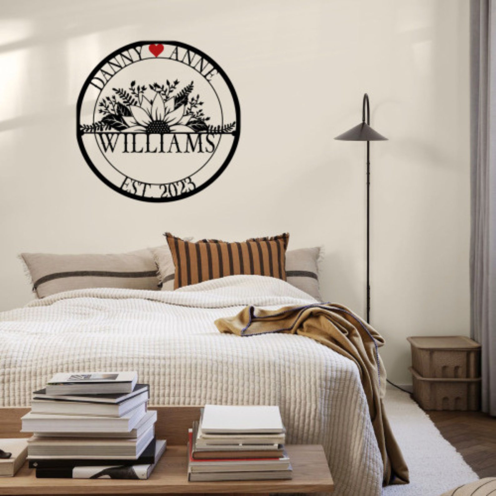 Red Heart & Sunflower Metal Wedding Sign Personalized