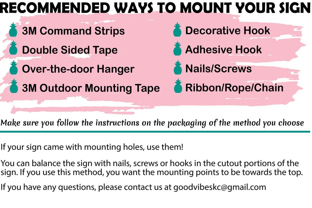 -Does not come with mounting holes unless requested, we recommend you use damage free command strips or other double sided adhesive.