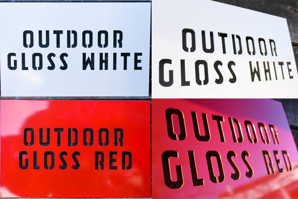 OUTDOOR GLOSS RED – The Outdoor Gloss Red finish is a glossy, bright red powder coat. This UV protected finish will protect the steel in the toughest conditions including outside in wet and salty environments. Powder coat is a thick industrial coating that is VOC free and holds up for many years.