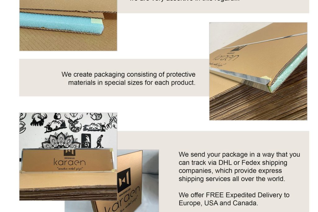 Our products are packed in a special box so that they can reach you without any problems. We prefer to work with the best EXPRESS cargo companies in the world to deliver your orders to you as soon as possible. If there is any problem with your delivery, please contact us to resolve it.